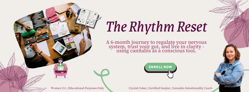 The Rhythm Reset is your next step. A 6-month guided experience that uses cannabis and conscious tools to help you reconnect with your nervous system, your intuition, and your power—from the inside out.
